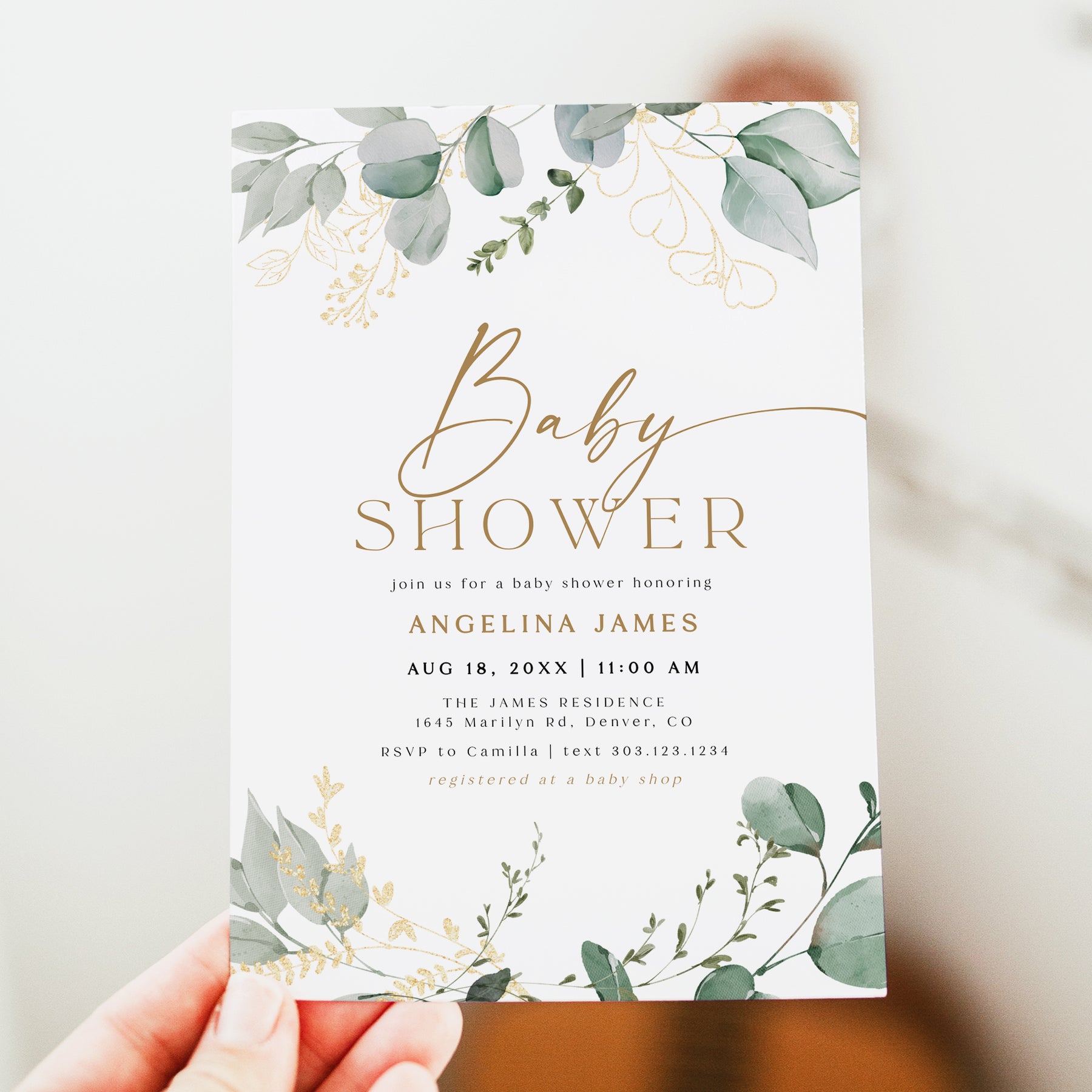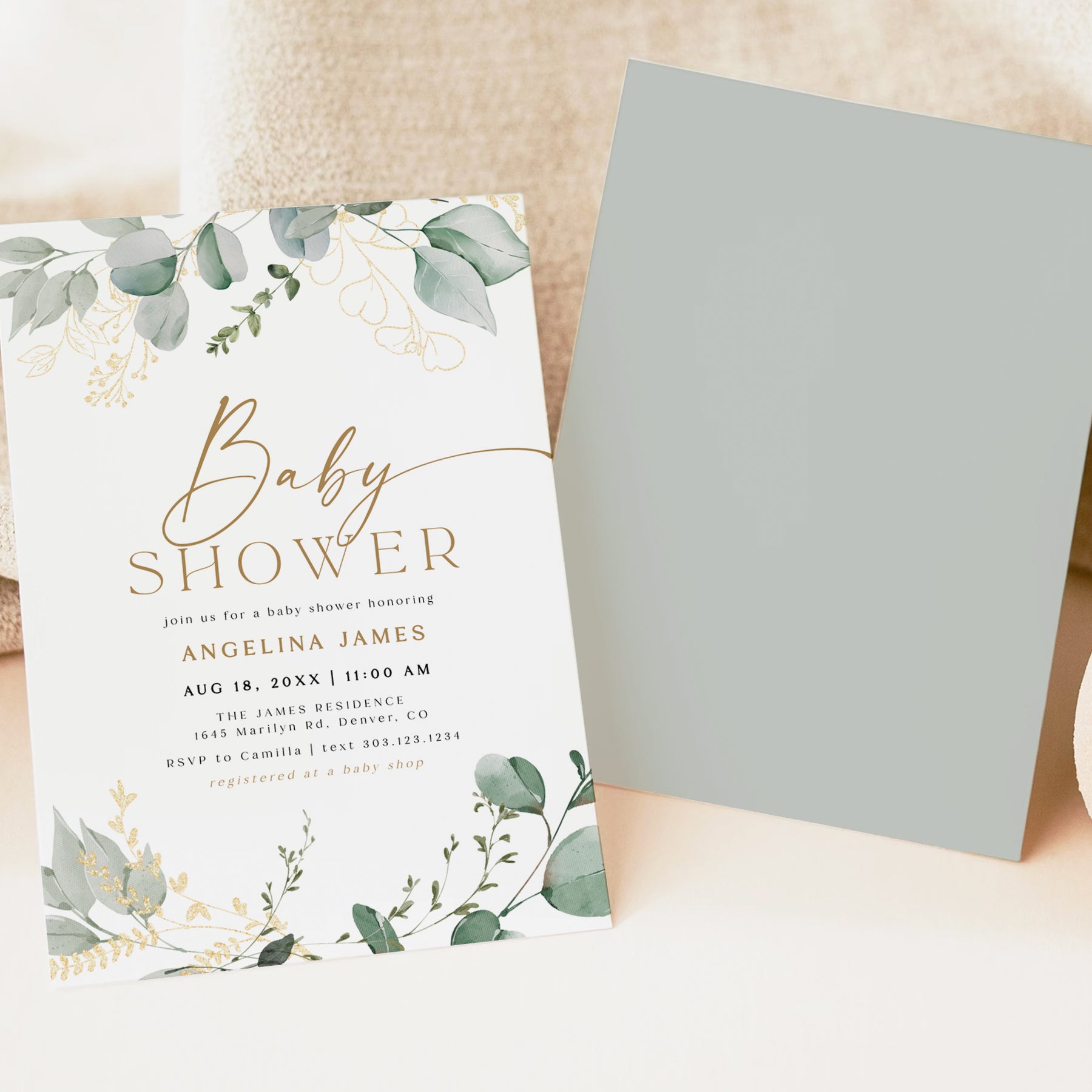 This baby shower invitation features cute watercolor girl clothes and accessories paired with a modern boho font combination and dusty pink mauve florals.