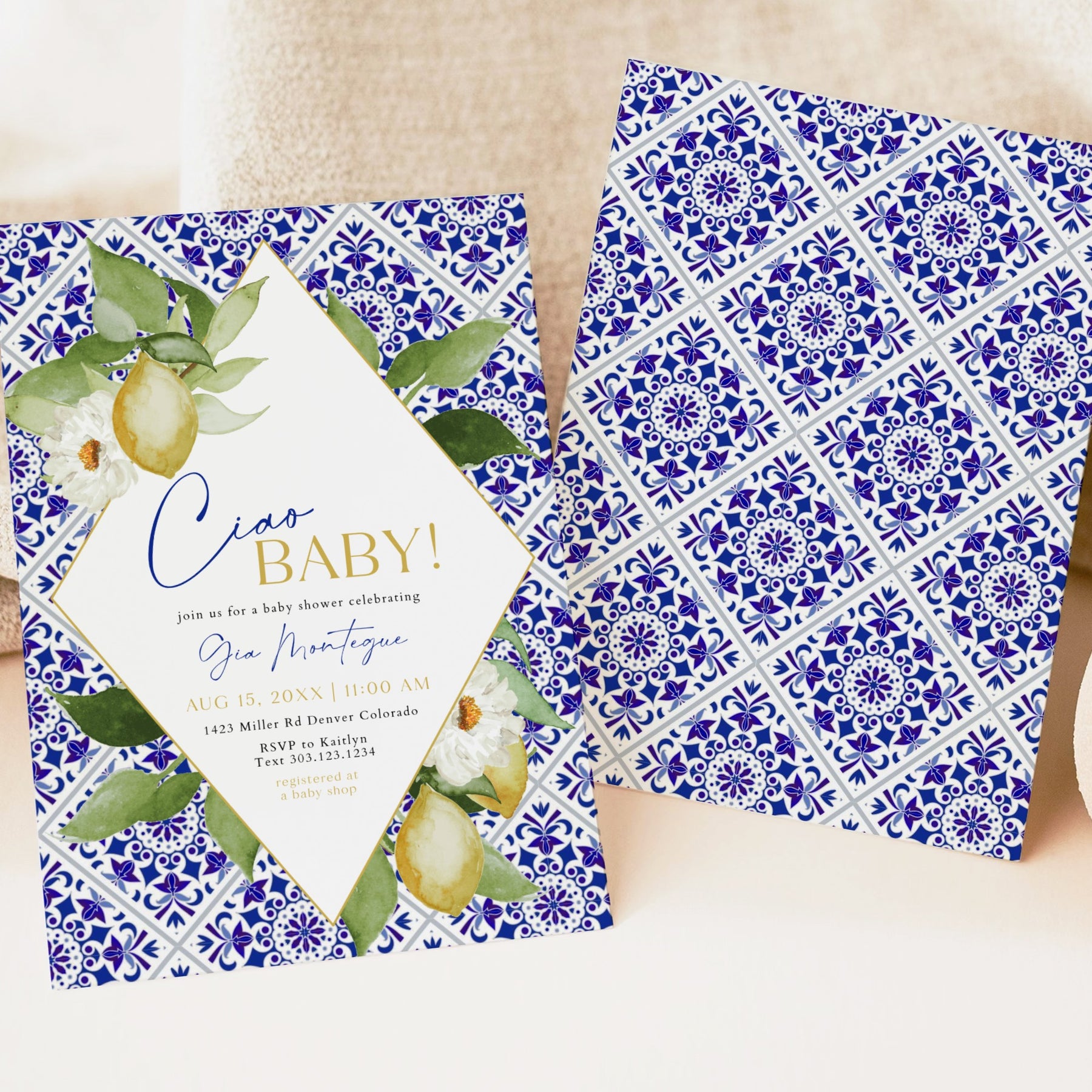 GIA Ciao Baby Lemon Mediterranean Baby Shower Invitation