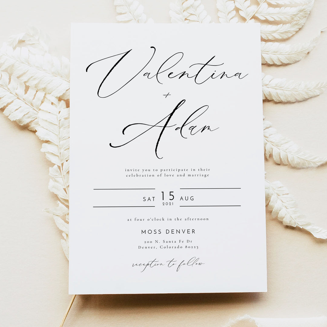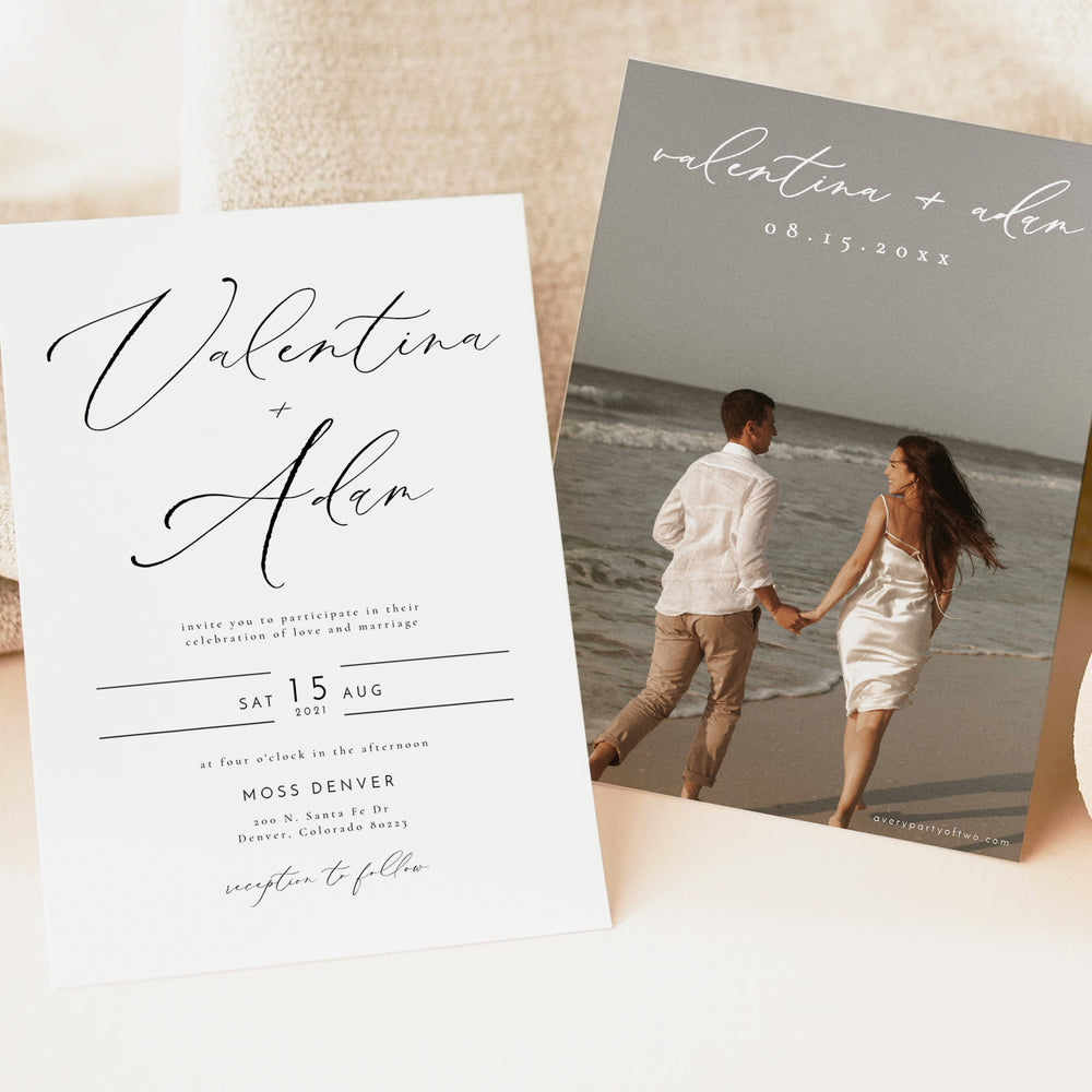 VALENTINA Elegant Black and White Wedding Invitation with Photo
