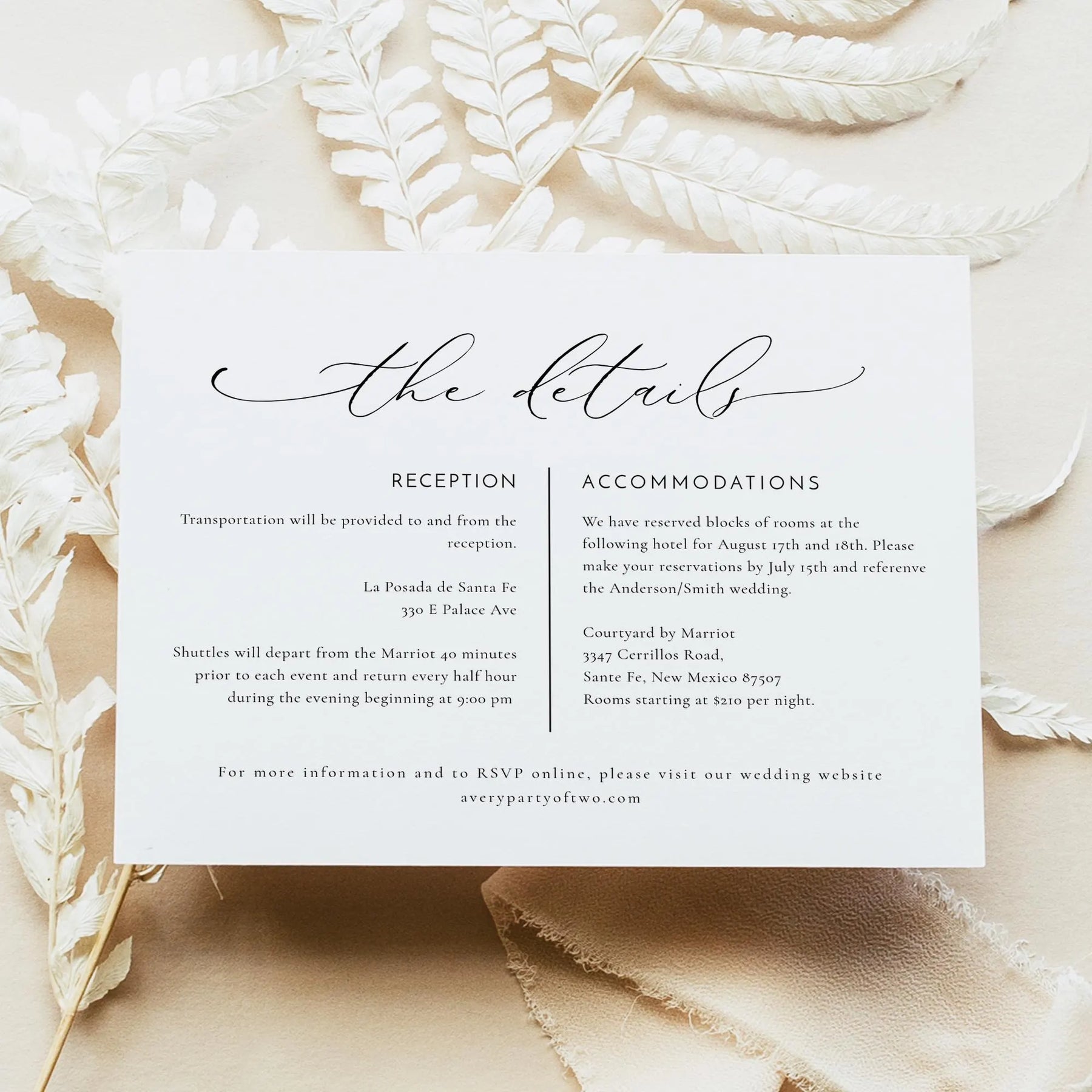 Announce your wedding day with timeless elegance using the Valentina Collection 3-piece wedding invitation suite. Featuring graceful, modern calligraphy and a refined minimalist layout, this suite creates a romantic first impression for your celebration while keeping every detail beautifully organized. The collection includes a wedding invitation with gummed straight-flap envelopes, a coordinating details card, and an RSVP card with matching gummed straight-flap envelopes. Simply select the piece you need from the dropdown menu and add your desired quantity to the cart to build the perfect invitation set for your wedding day.