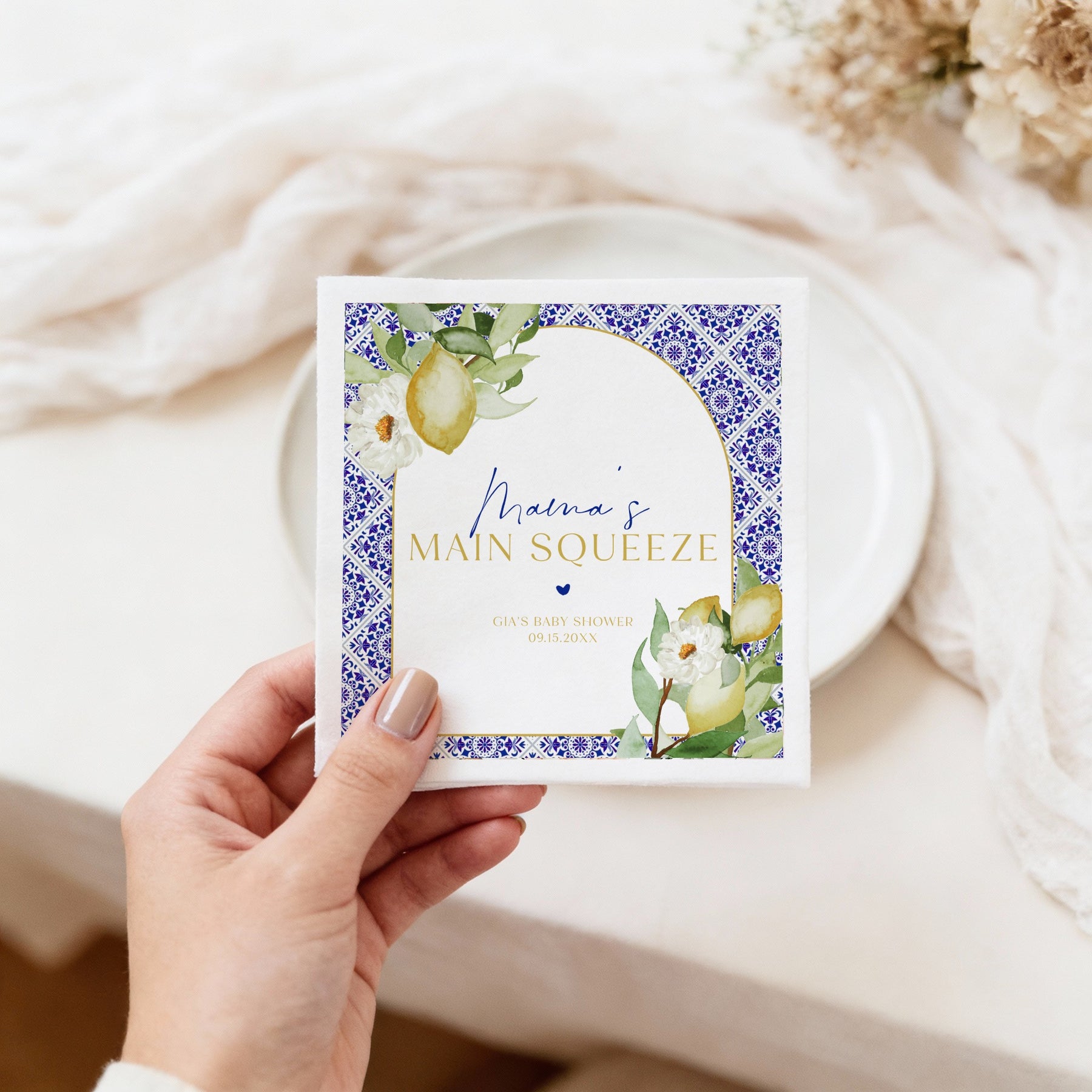 GIA Personalized Main Squeeze Mediterranean Lemon Baby Shower Napkins