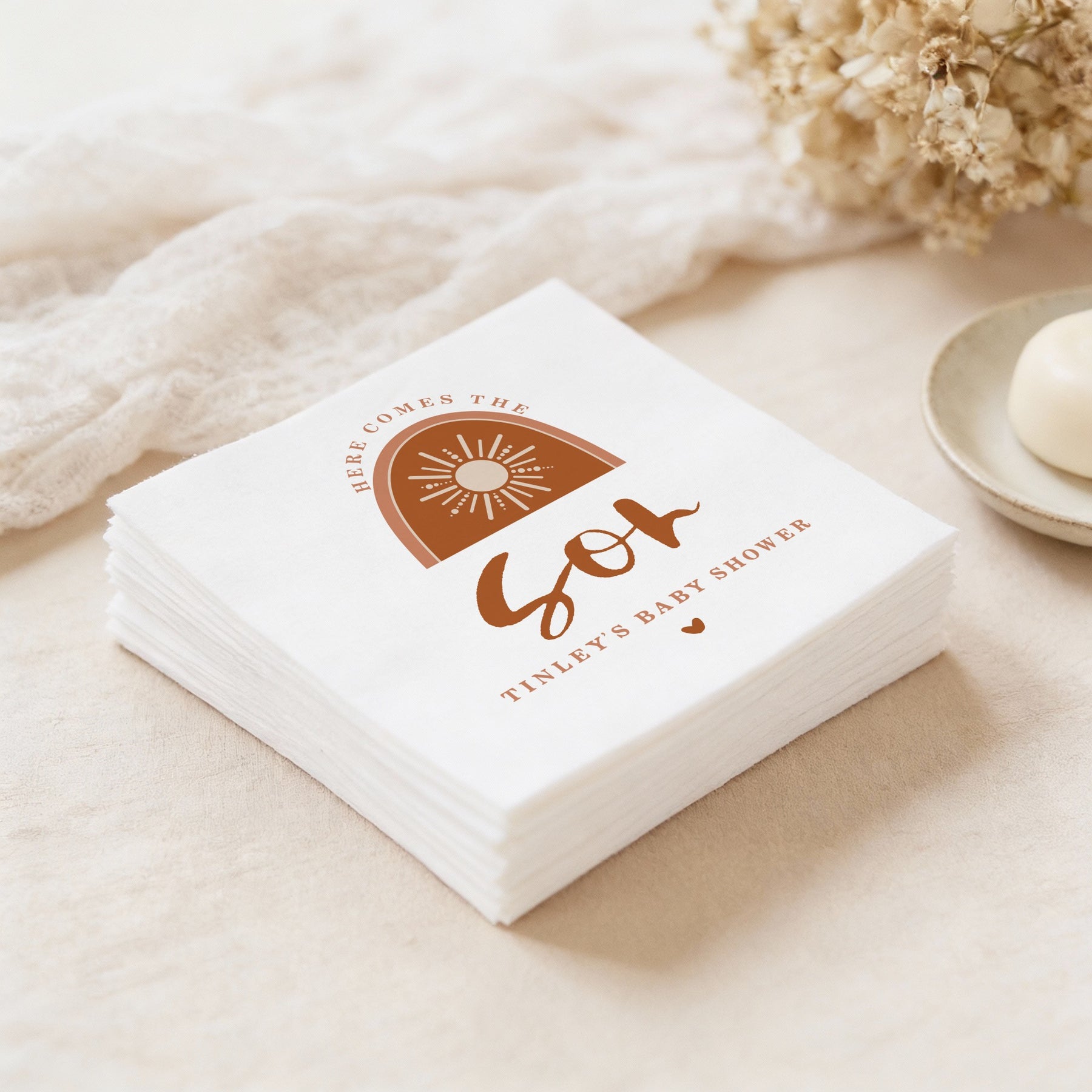 TINLEY Personalized Here Comes the Son Boho Sun Baby Shower Napkins