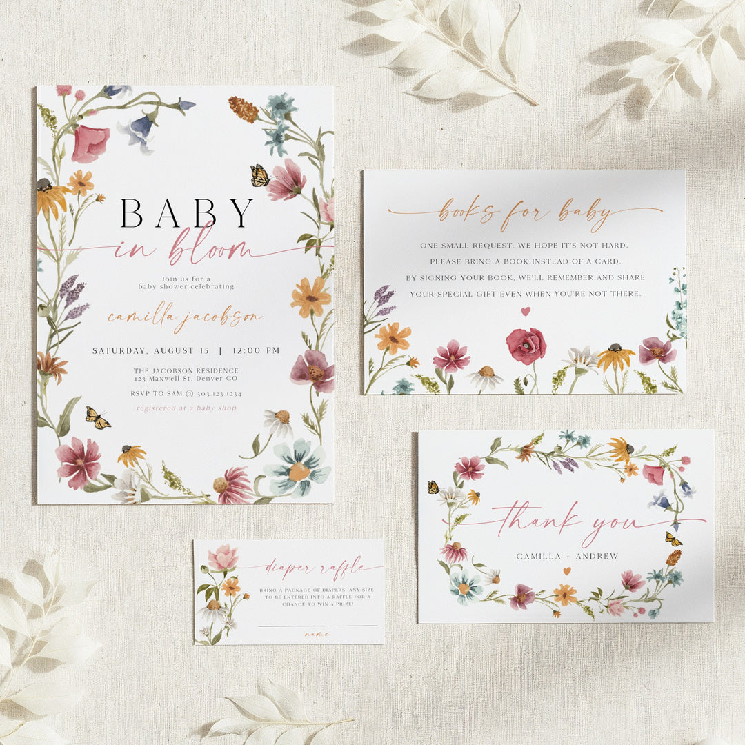 CAMILLA Baby in Bloom Wildflower Baby Shower Invitation Set