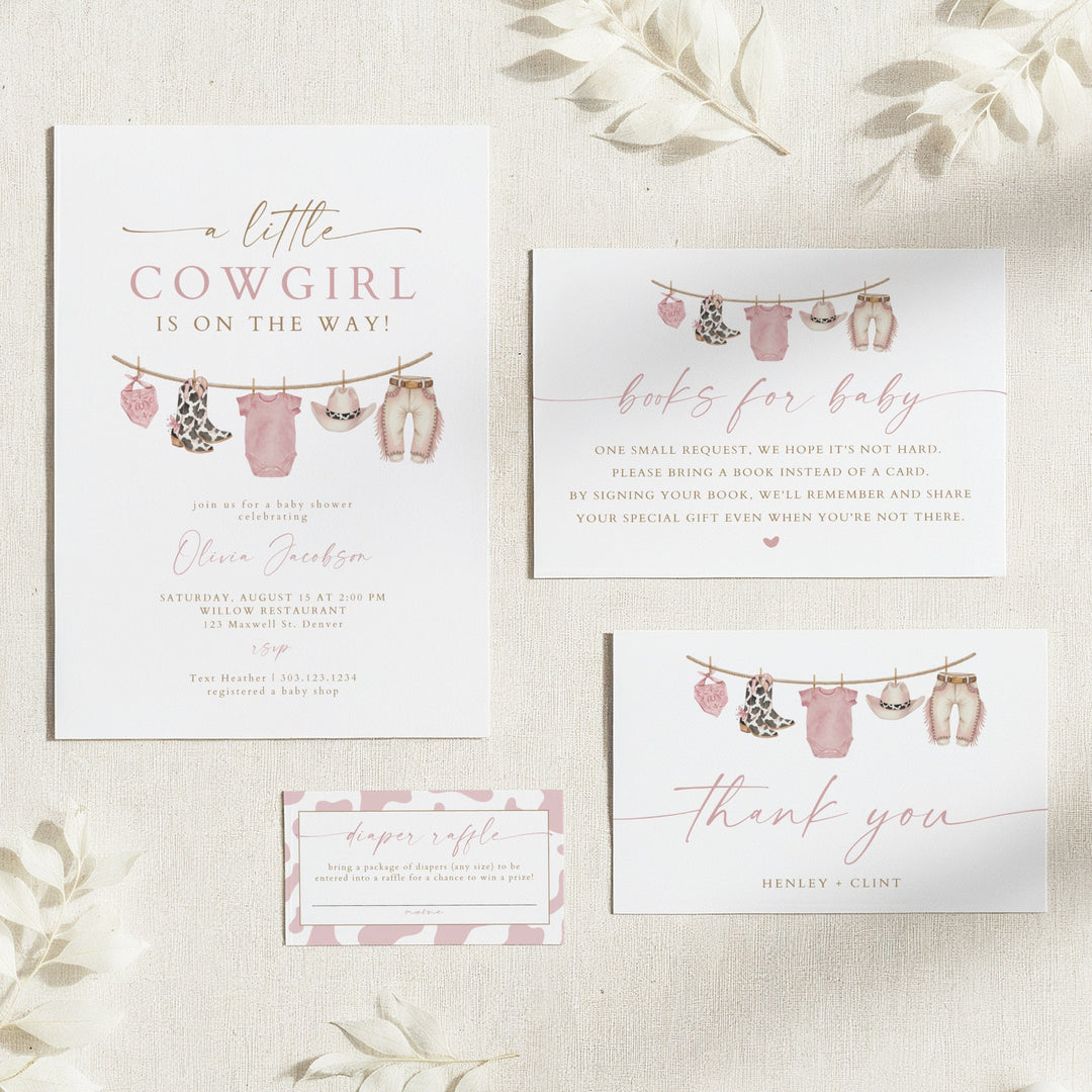 DOLLIE Little Cowgirl On the Way Western Rodeo Baby Shower Invitation Suite