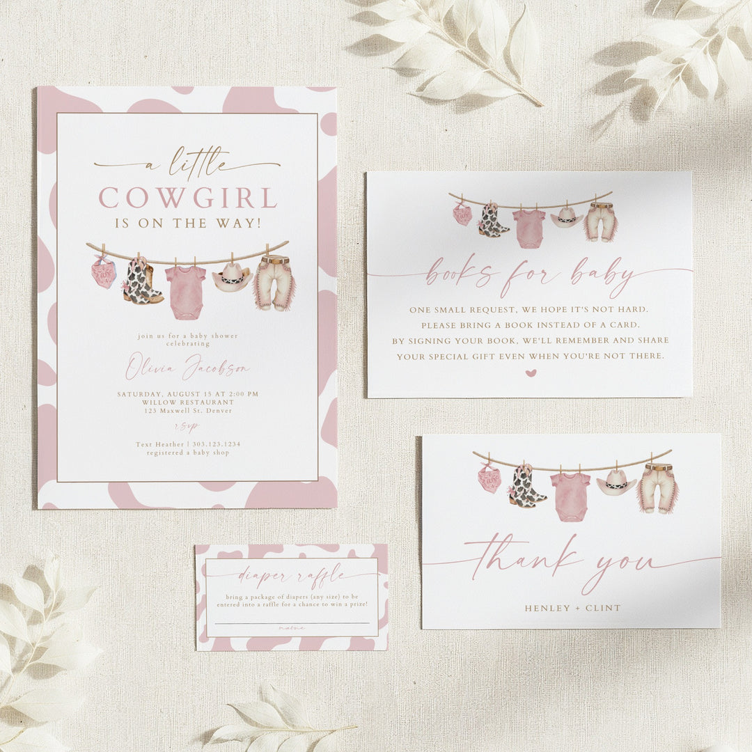 DOLLIE Little Cowgirl On the Way Cow Print Baby Shower Invitation Suite