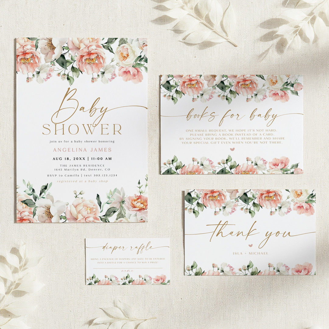 ISLA Pink Floral & Gold Elegant Baby Shower Invitation Set