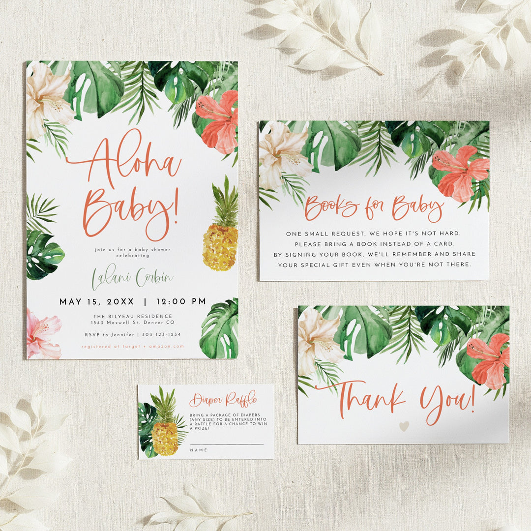 LALANI Aloha Baby Tropical Baby Shower Invitation Bundle
